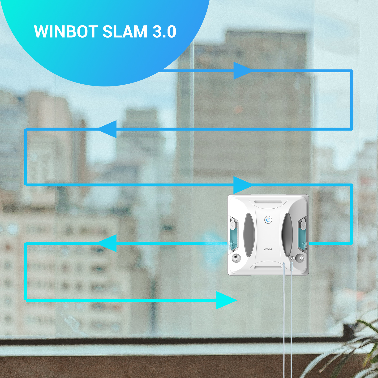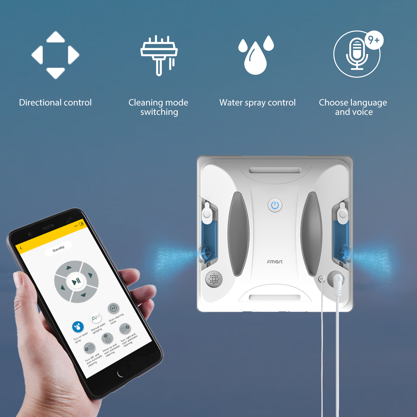 FMART Window Cleaner Robot,Double-Sided Spray Water,3800Pa Strong Suction Smart Window Cleaning Robot,Support APP&Remote Control Robot Window Cleaner,Suitable for Outdoor/Indoor High Rise Windows Tile