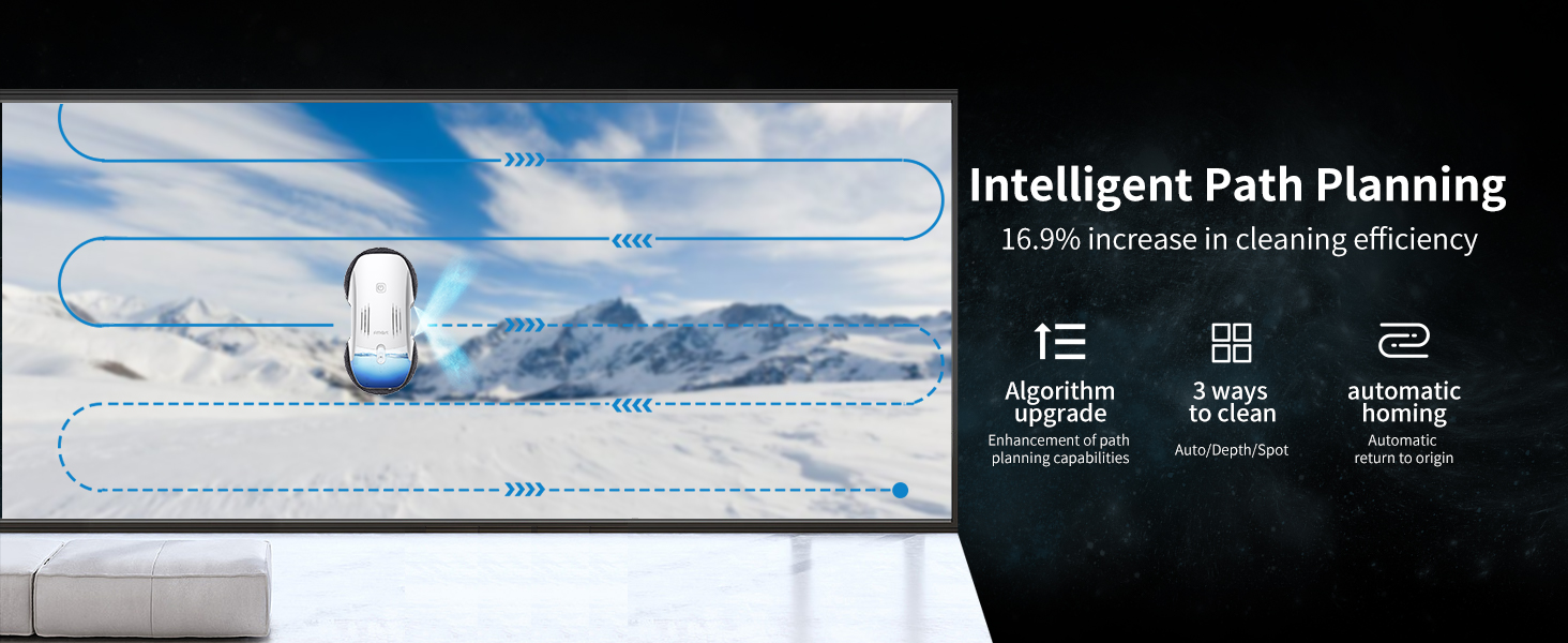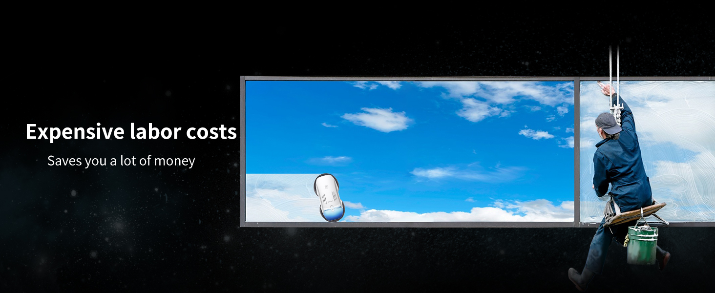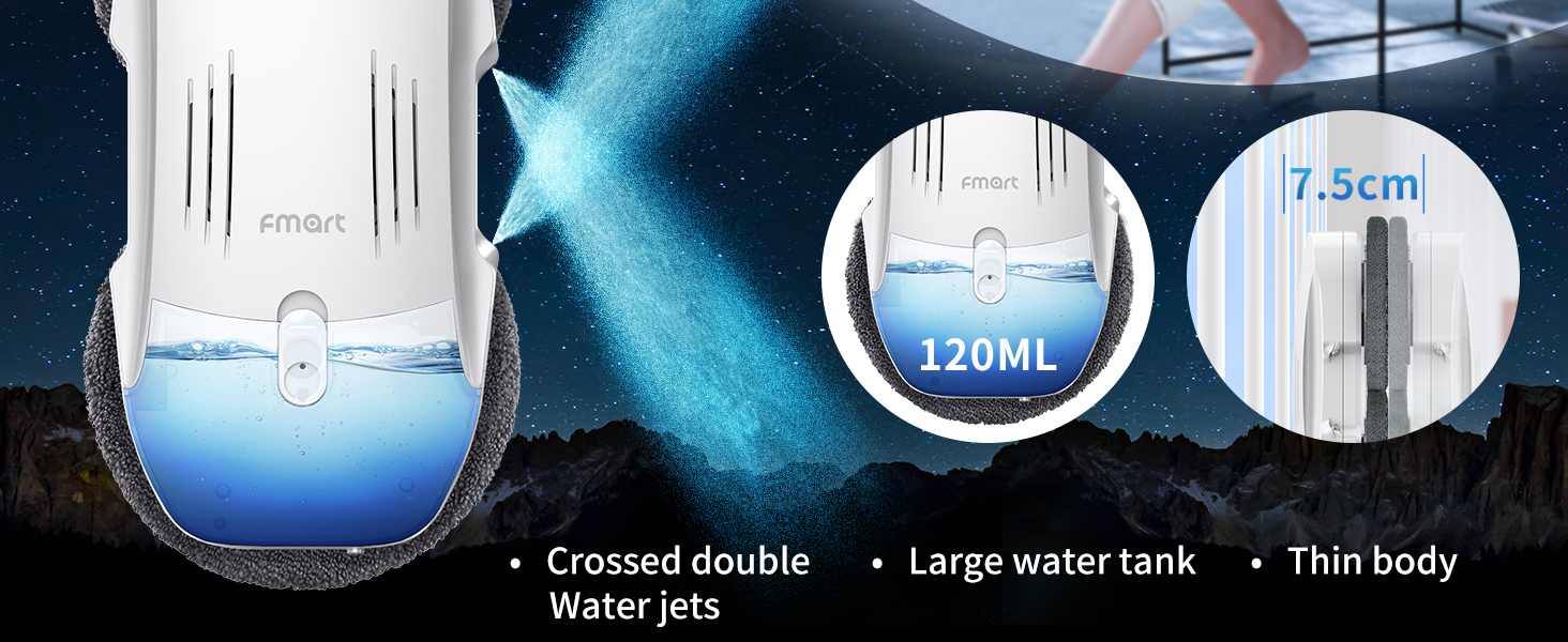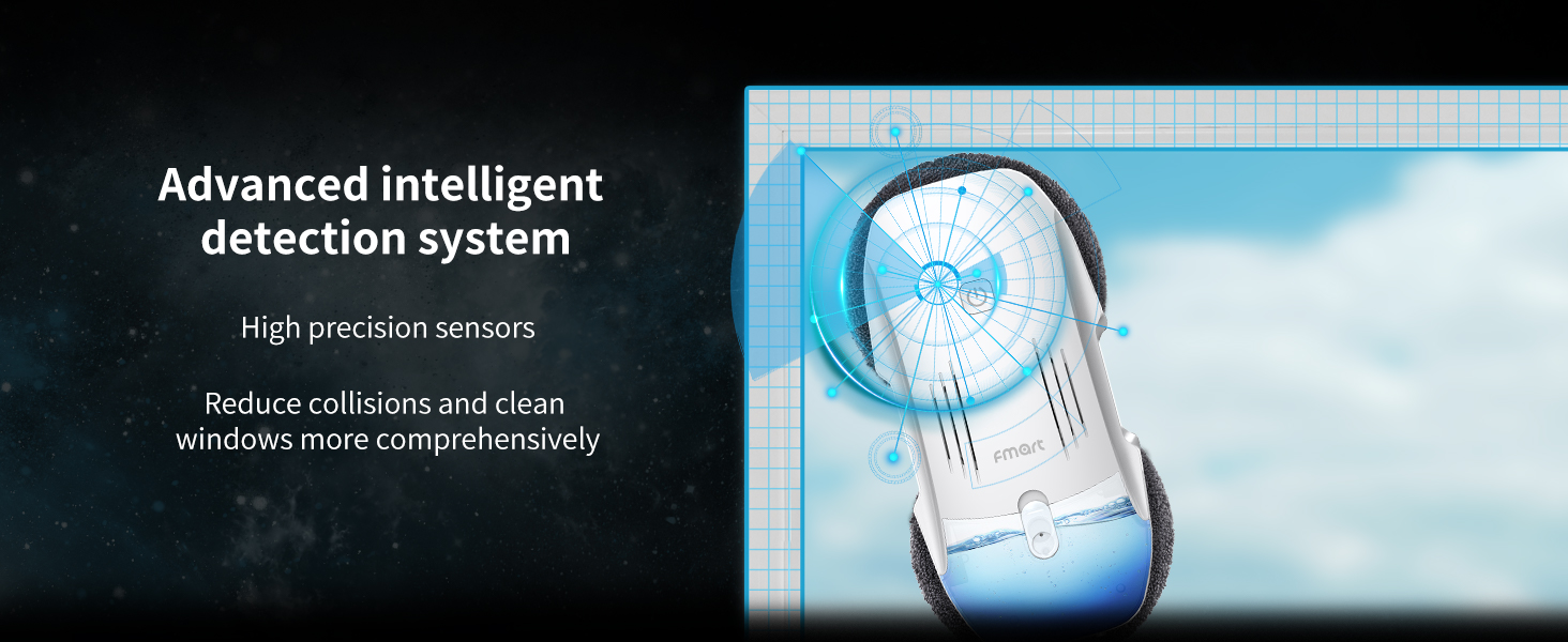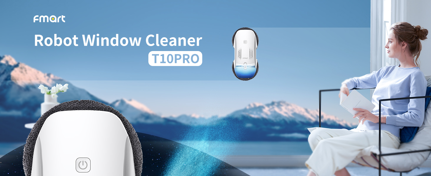 FMART T10pro Window Cleaner Robot, 120ml Water Tank, Intelligent Cleaning with Dual-Spray Cross Water Pump, 3800PA Suction Power, AI Intelligent Path Planning, Edge Detection Technology, APP Control