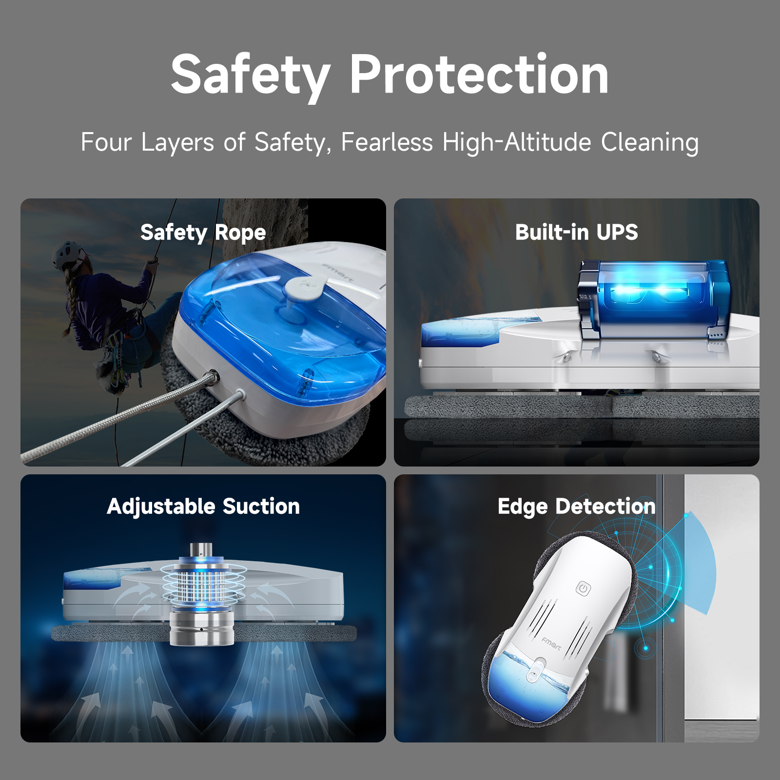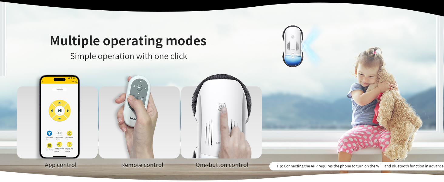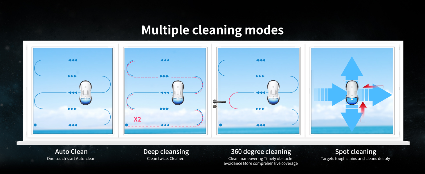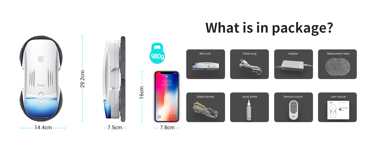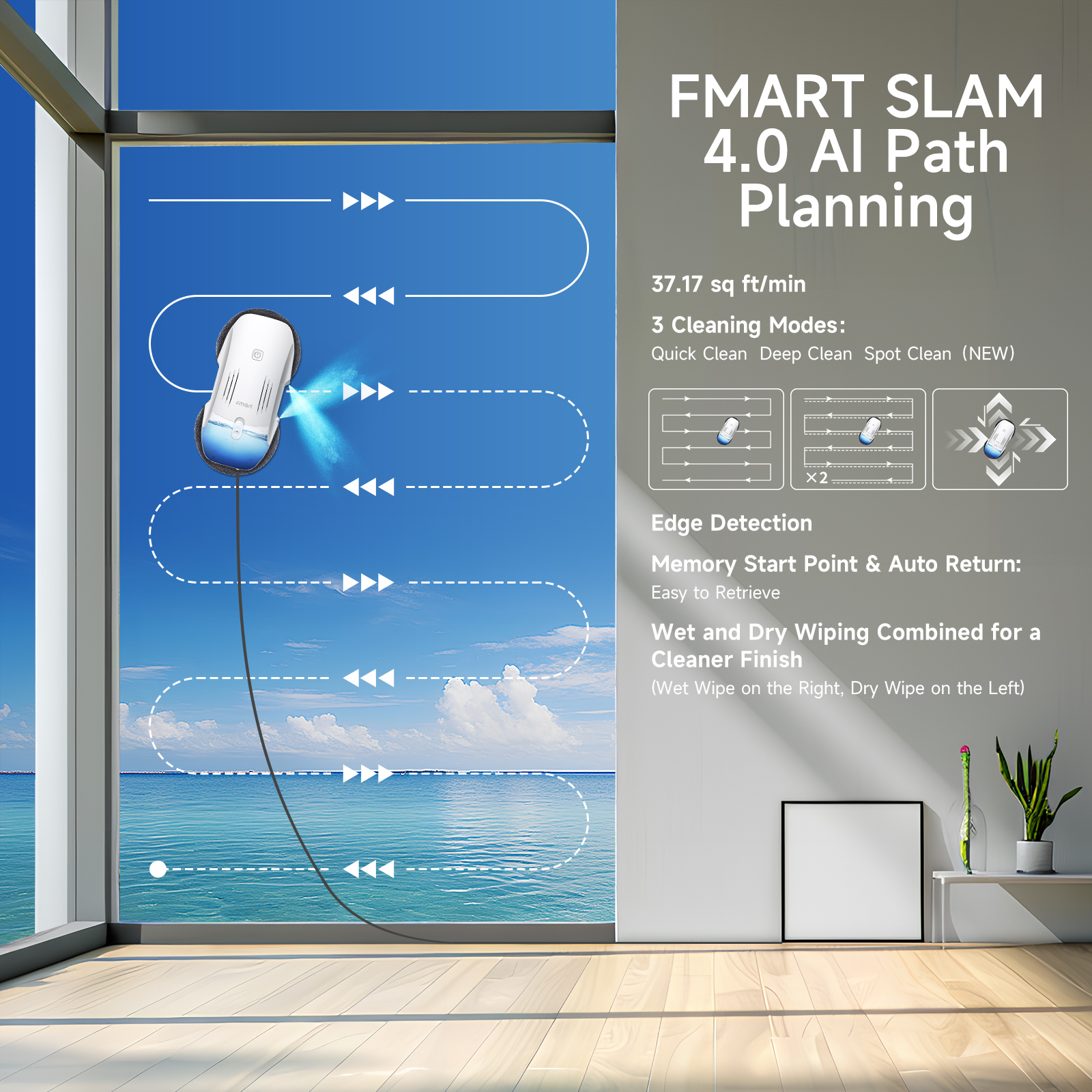 FMART T10pro Window Cleaner Robot, 120ml Water Tank, Intelligent Cleaning with Dual-Spray Cross Water Pump, 3800PA Suction Power, AI Intelligent Path Planning, Edge Detection Technology, APP Control