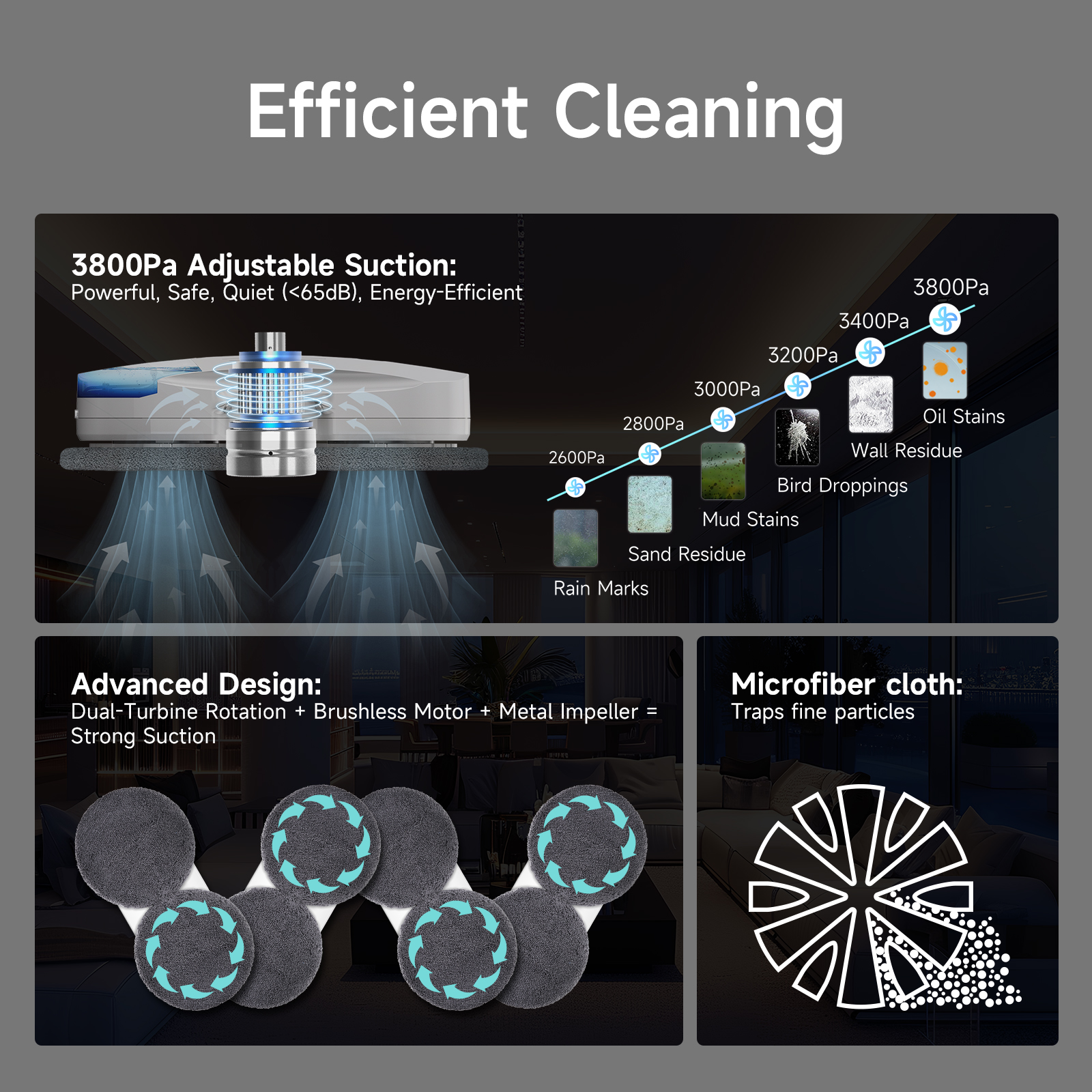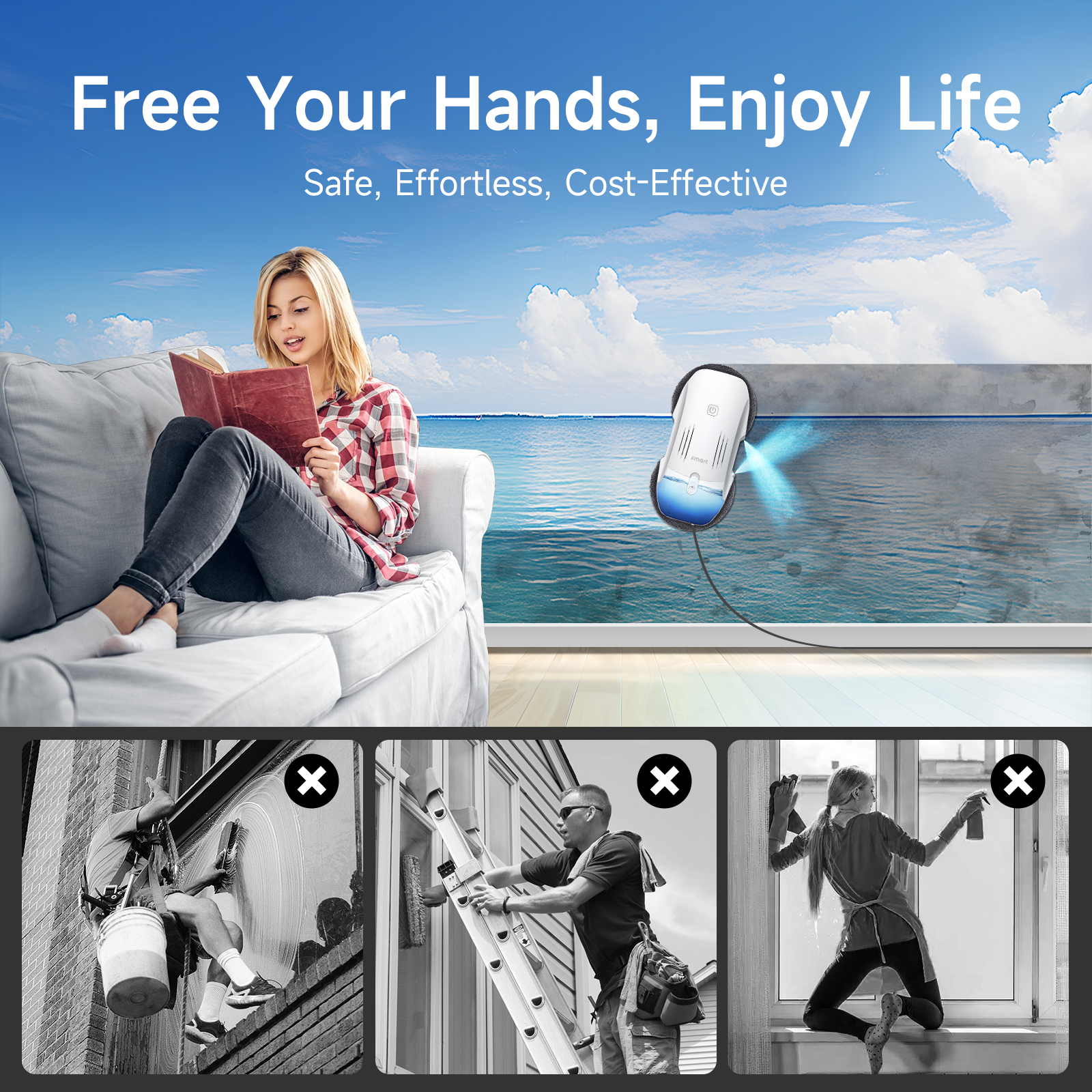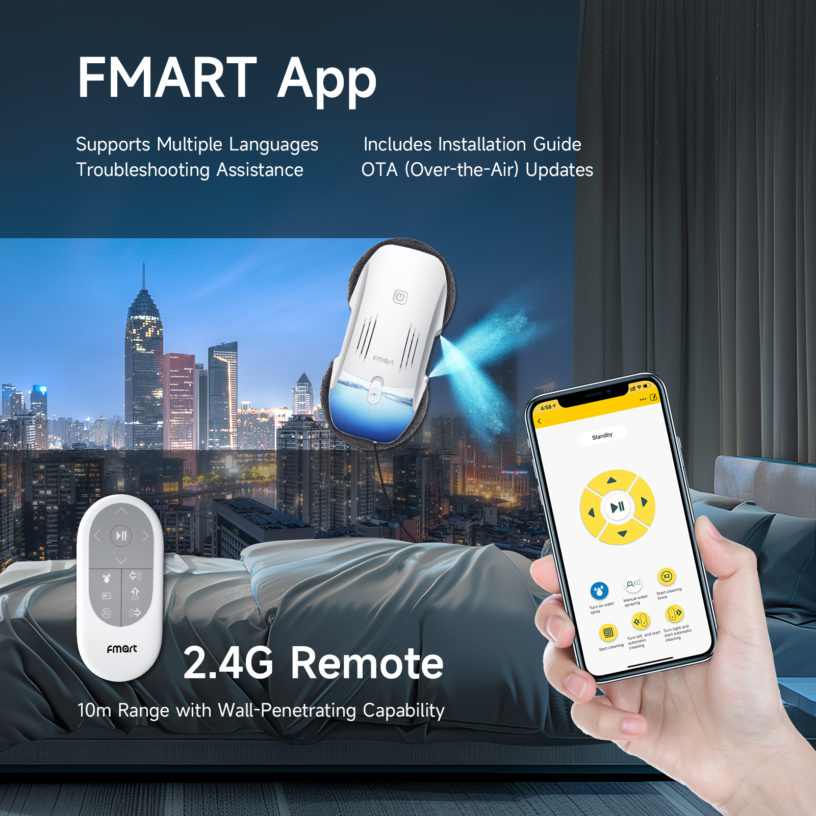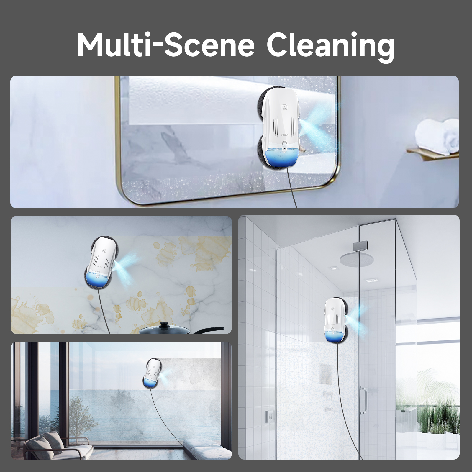 FMART T10pro Window Cleaner Robot, 120ml Water Tank, Intelligent Cleaning with Dual-Spray Cross Water Pump, 3800PA Suction Power, AI Intelligent Path Planning, Edge Detection Technology, APP Control
